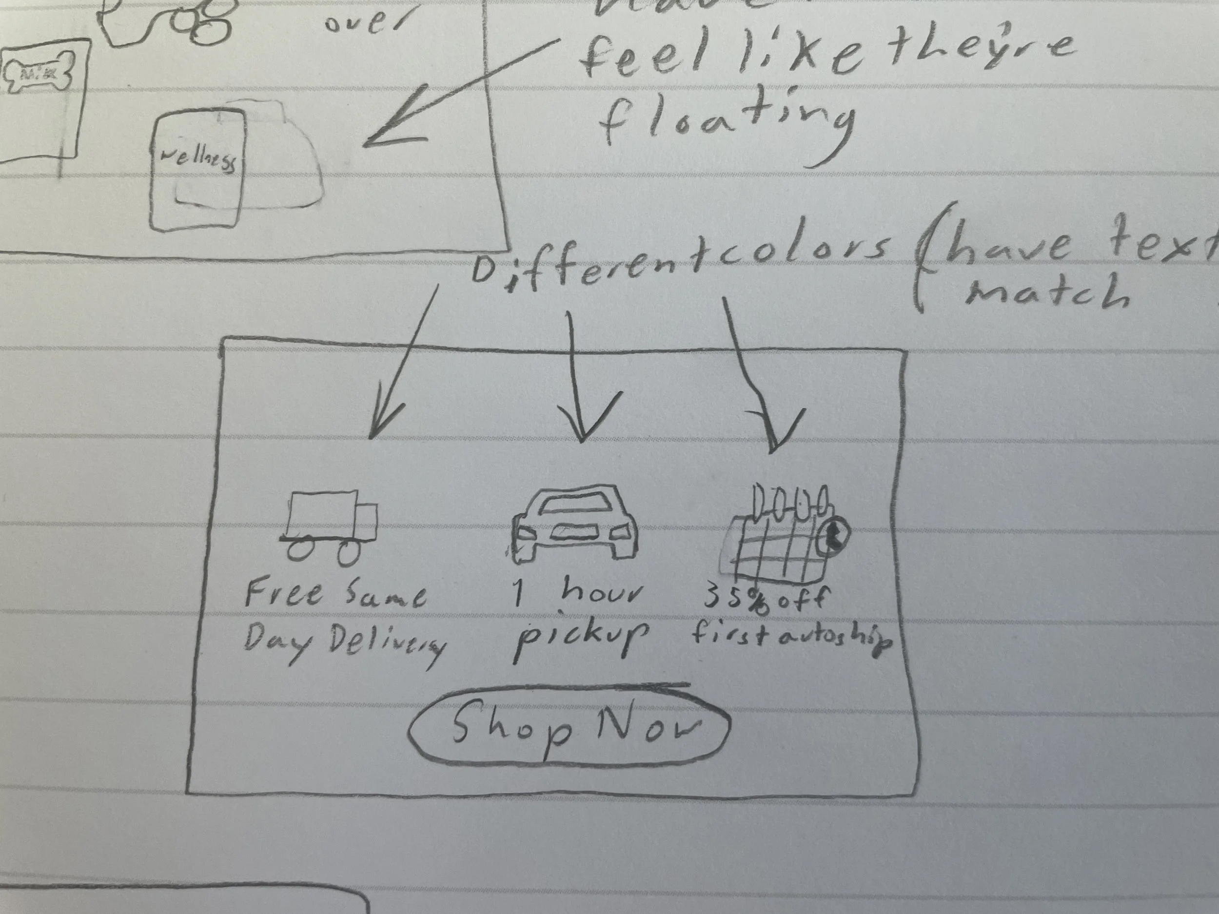 I created pages that were organized into: the kind of pet people were shopping for, featured brands, and popular treats. This way customers could scroll right to where they are looking quickly and efficiently.